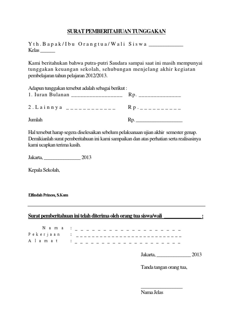 Ketika membuat surat penagihan pembayaran pembelian suatu barang hendaknya menggunakan bahasa yang sopan dan tidak menyinggung pihak yang akan ditagih. Contoh surat peringatan pembayaran sekolah contoh surat from lh4.googleusercontent.com departemen pendidikan dan kebudayaan smk negeri 6 kota surabaya jalan menuju ridha ilahi no. 6 contoh surat pernyataan kesanggupan paling fresh 2018. 10 contoh surat pemberitahuan untuk orangtua murid contoh surat.bermacam contoh surat pemberitahuan resmi. Selanjutnya bertindak untuk dan atas nama orangtua/wali dari :